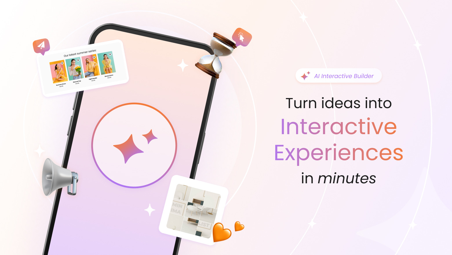 turns text prompts into AI-powered quizzes, games, forms, and interactive components. No code required.